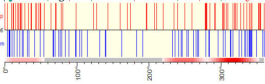 In other words the active zones here simply represent the irregularity of Mars movement. This effect appears very often, For practical use if we have dense zones for BOTH tops (red stripes) and bottoms (blue stripes) with high probability it means that we deal with planetary irregularity effect.