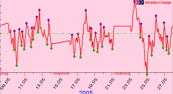 In Timing Solution, it is possible to work with different kinds of financial data - like daily data, daily intraday and weekly intraday. Please be careful with this issue because the setting related to a specific kind of data can strongly affect the projection line. For example, when working with daily-intraday data, you should define the non trading hours, and the program will not display the projection line on non trading hours. To do that, the program needs to know what type of data you are dealing with.